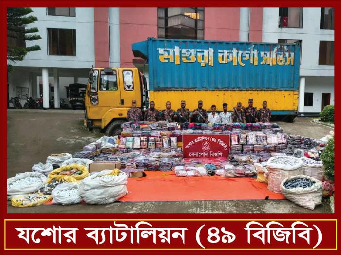 বেনাপোলে বিজিবির অভিযানে বিদেশি মদ গাঁজা ফেনসিডিল ও কসমেটিক্স সামগ্রী আটক