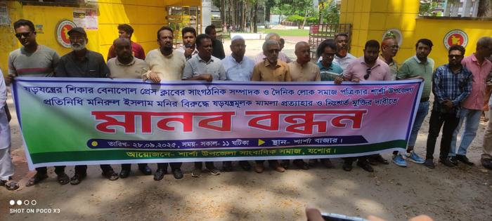 শার্শায় সাংবাদিক মনির মুক্তির দাবিতে মানববন্ধন, ওসির অপসারণ দাবি